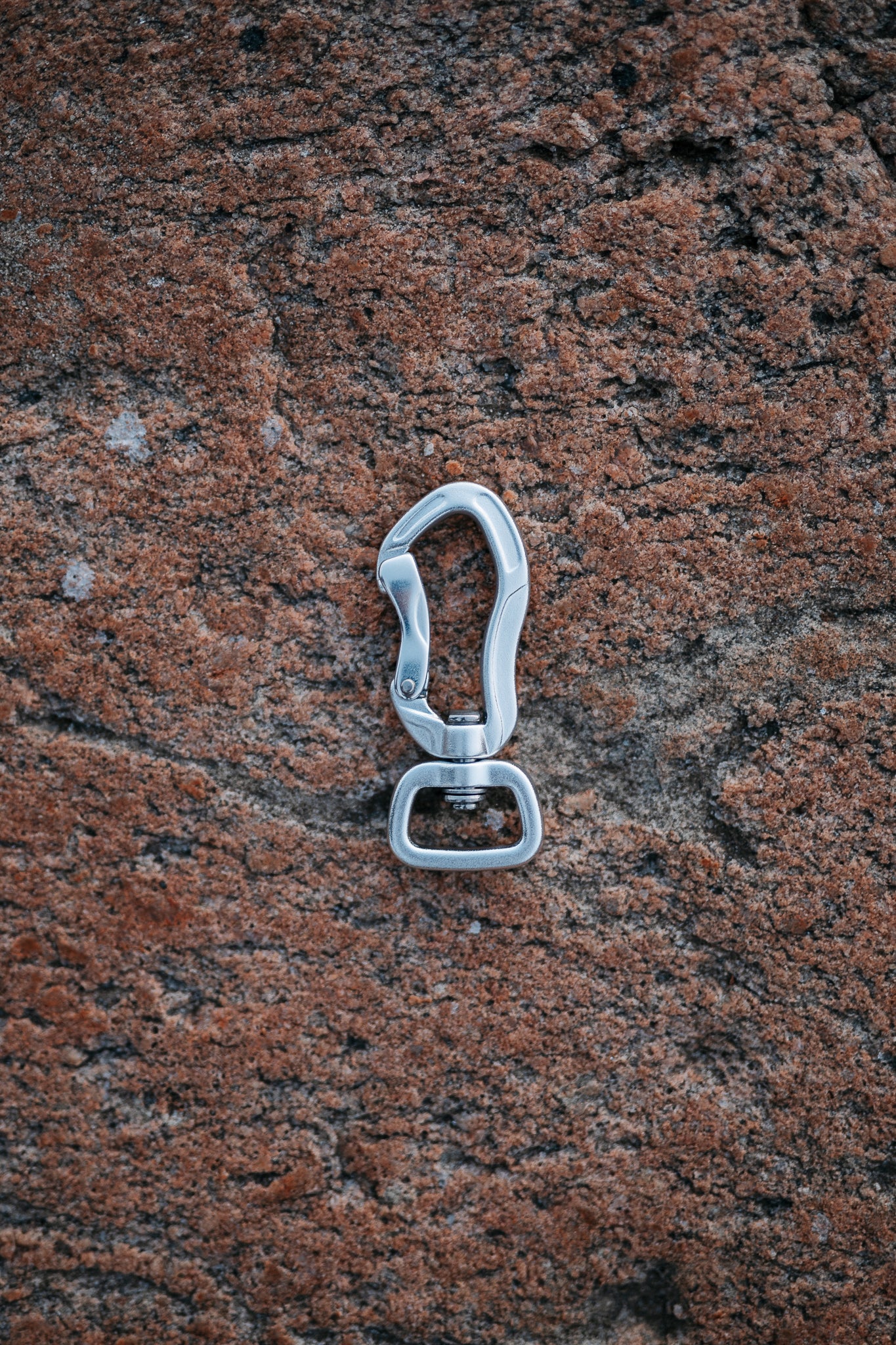 Karbinhaken är tillverkad i robust aluminium med 400 kg breaking load, vilket ger extra säkerhet utan att kopplet blir tungt. Den är smidig, slitstark och har en swivelfunktion som gör att kopplet inte tvinnar sig.