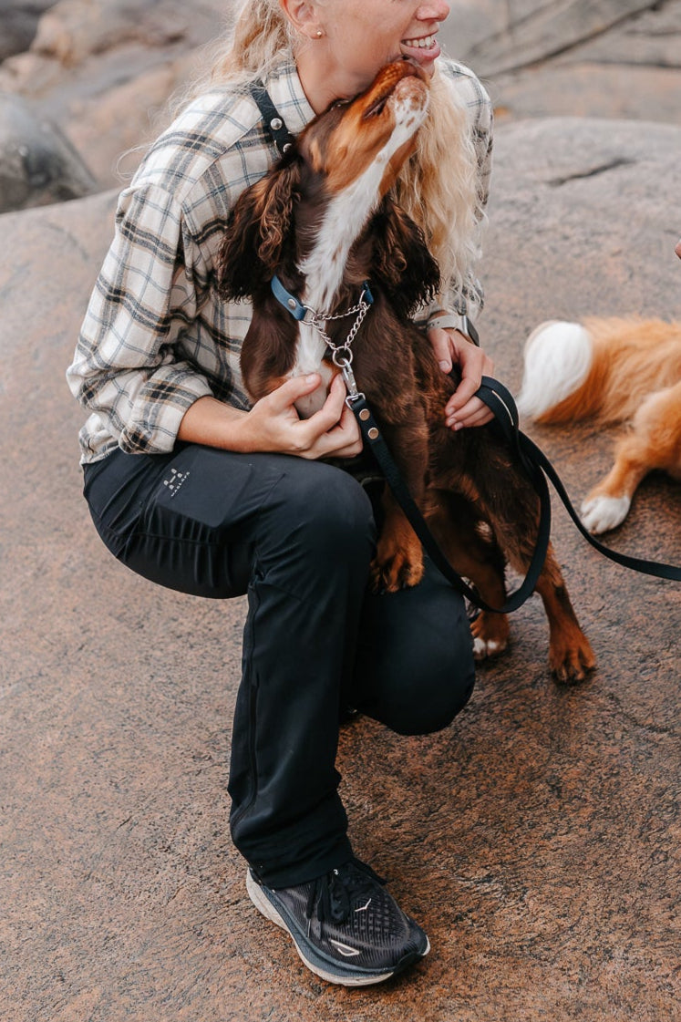 Hexa-materialet ligger mjukt mot pälsen, men är ändå greppvänligt och tåligt nog för vardagens alla väder. Och det bästa? Det drar inte åt sig vatten eller lukt medan kedjan inte rostar – så du slipper halsbandet som blir unket efter en regnig vecka eller ett spontant dopp.
