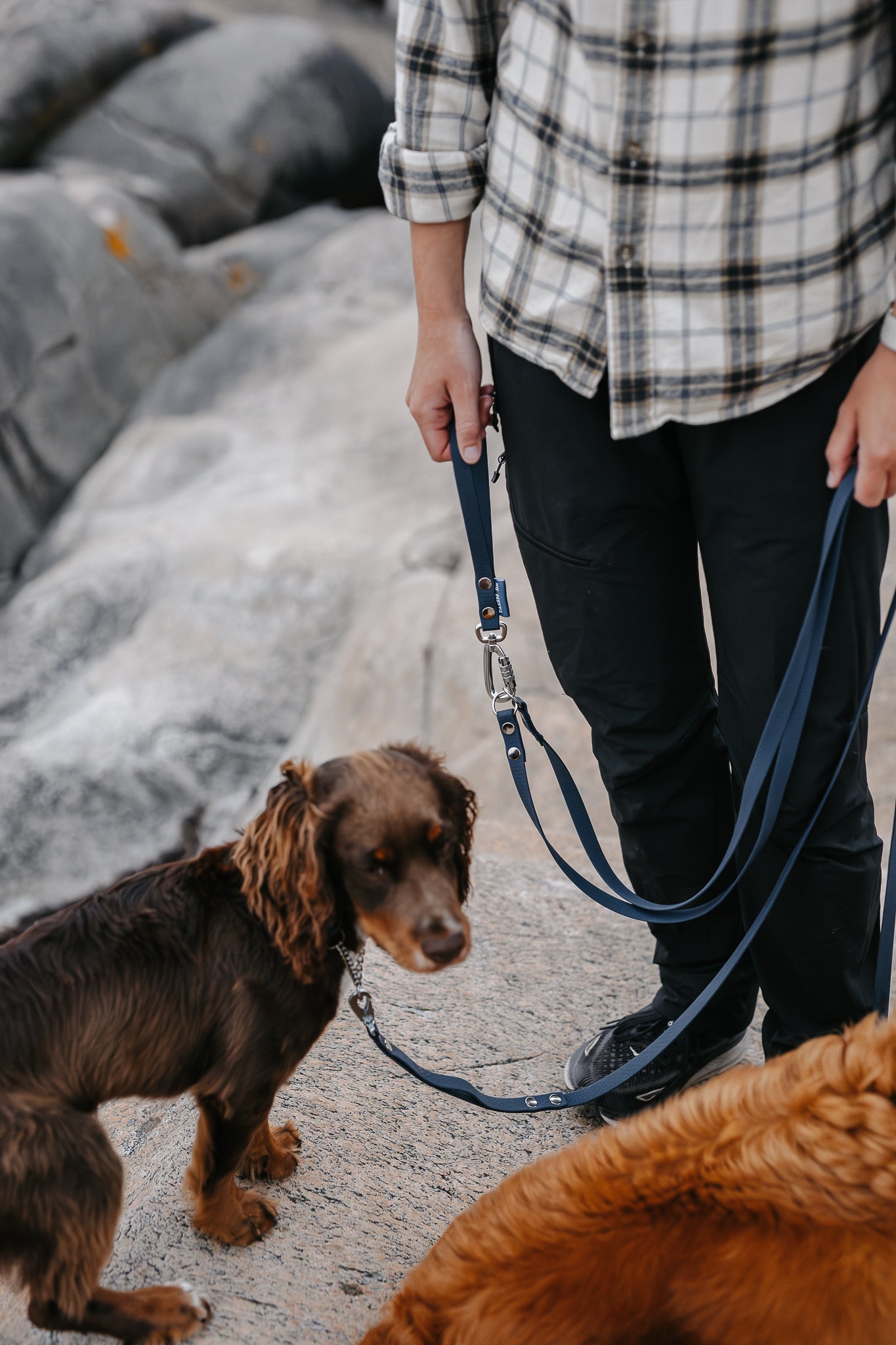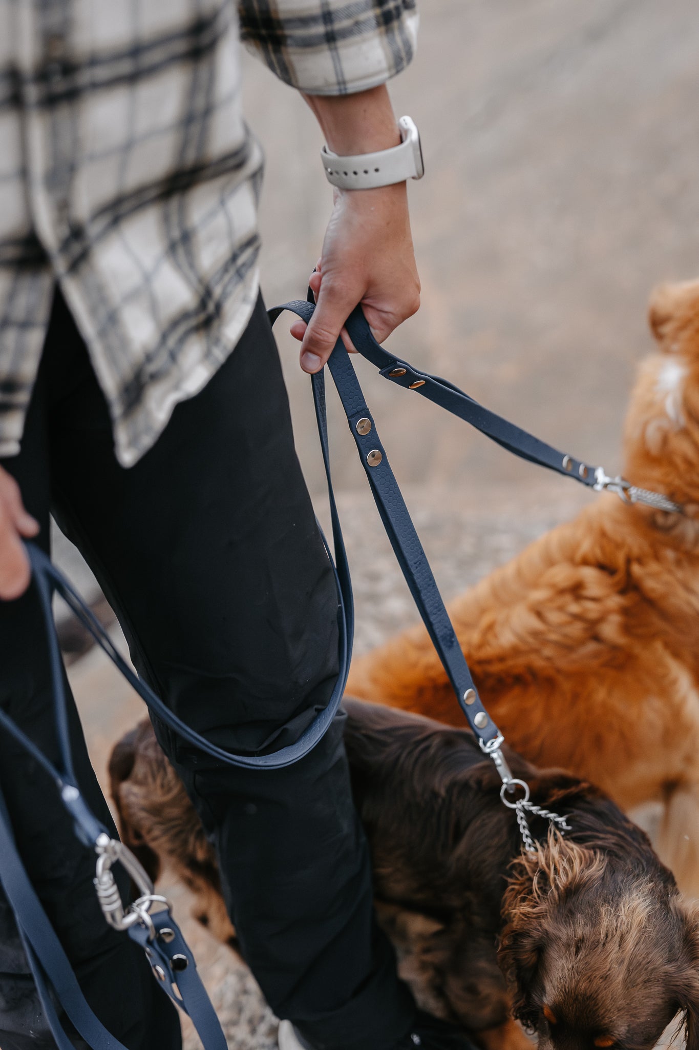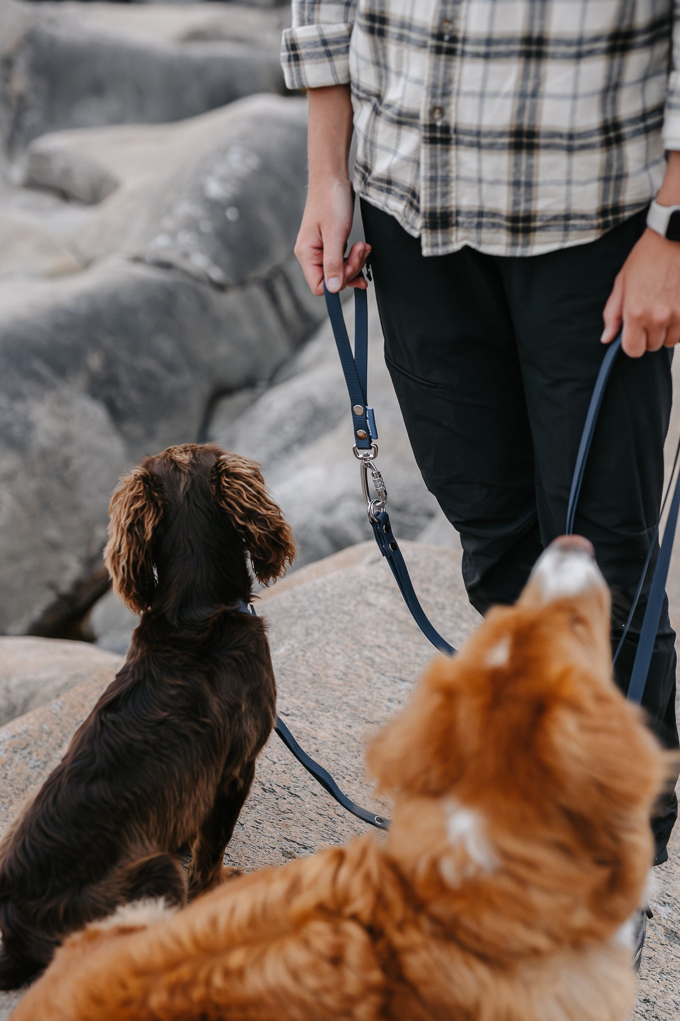 Våra dubbelkoppel är lösningen för dig som vill gå med två hundar utan trassel men med frihet. Designat av Malin på @hoglandshunden och testat på både stadspromenader och långa turer i skogen. Välj med eller utan väktarhandtag för extra kontroll när du behöver ta in hundarna kort. Kopplet kommer för två hundar, men du kan enkelt lägga till extra länkar för fler hundar till samma handtag. Tillverkat i slitstarkt, greppvänligt och luktfritt hexa-material i 16 mm som är skönt i handen och enkelt att rengöra, året runt.