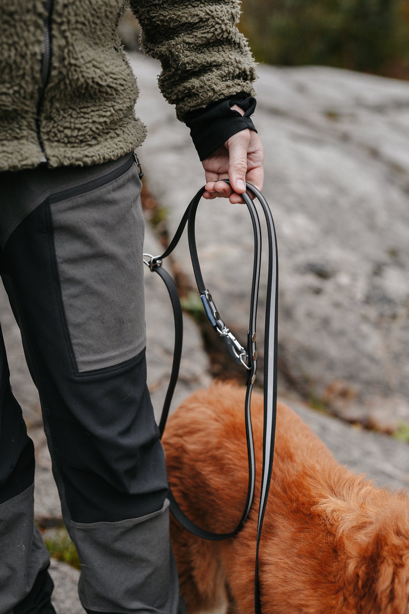 Rex multikoppel föddes ur vår egen jakt på det perfekta kopplet – ett som funkar lika bra när du vill ha händerna fria i skogen som när du trängs på trottoaren. Med två hakar och tre D-ringar (två fasta, en löpande) kan du enkelt: